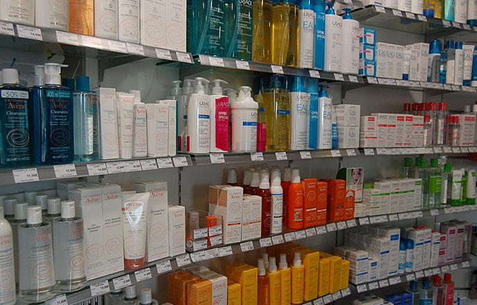 Crèmes de jour, de nuit, anti-rides et tous les autres traitements pour tous types de problèmes de peaux (acné, rougeurs, sècheresse…) ainsi que les savons, gels douche et shampooings sont à votre disposition.